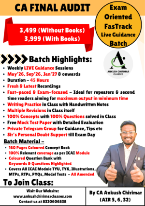 Exam Oriented FasTrack LIVE Guidance Batch – CA Final Audit For May26 / Sep26 & Onward