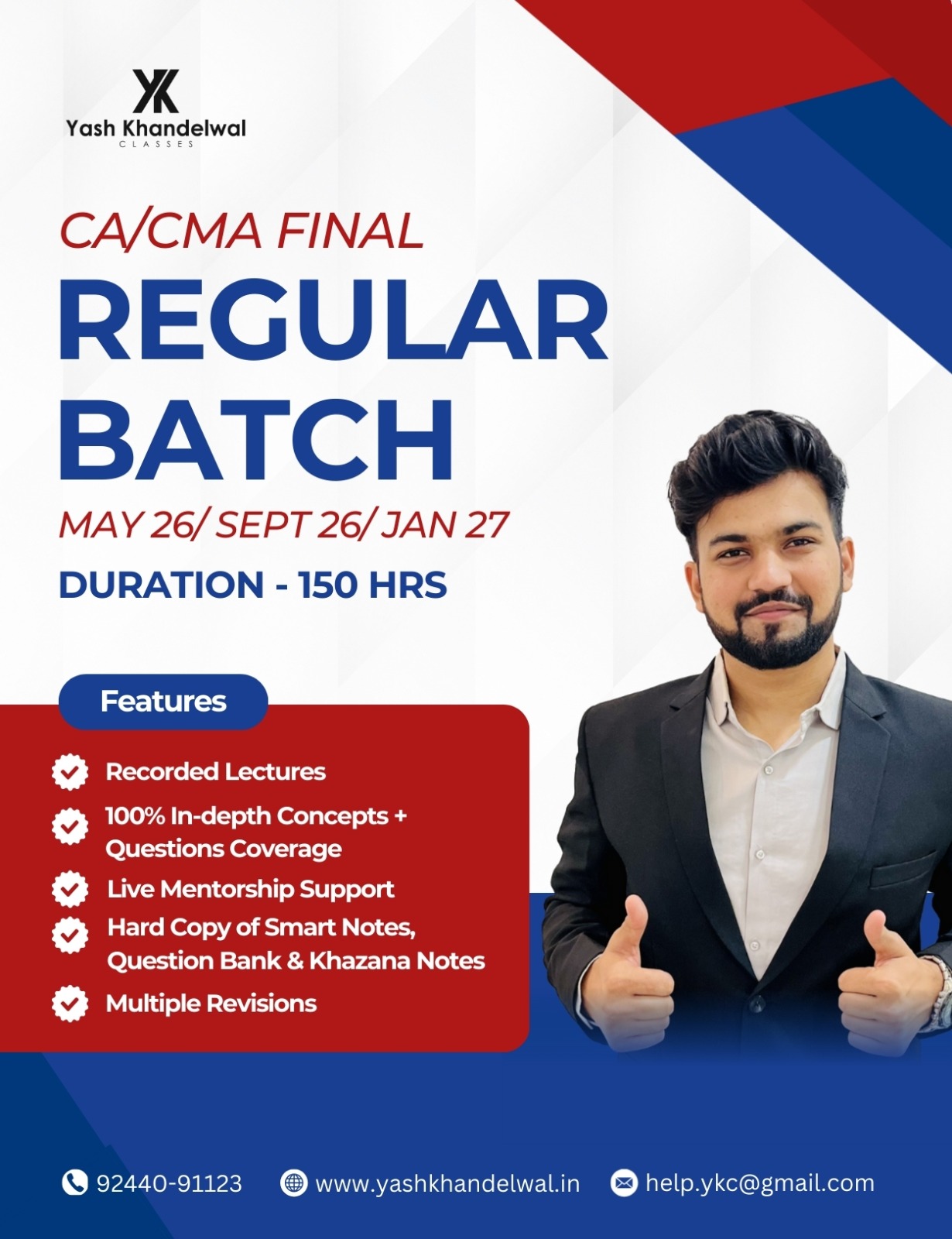 Call at (Weekdays 11 AM to 5 PM) or drop an email at help@yashkhandelwal.com