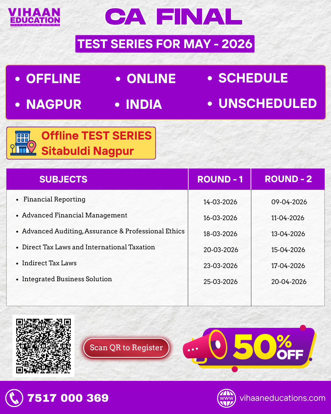 📘 Gear up for your CA Final exams with Vihaan Education’s highly rated Offline & Online Test Series – designed by India’s most experienced and chosen CA faculties.