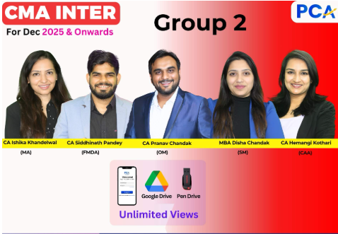 Tags: CA Hemangi Kothari, CA Ishika Khandelwal, CA Pranav Chandak, CA Siddhinath Pandey, CMA Inter Group 2 All 4 Subjects, MBA Disha Chandak, PCA Academy