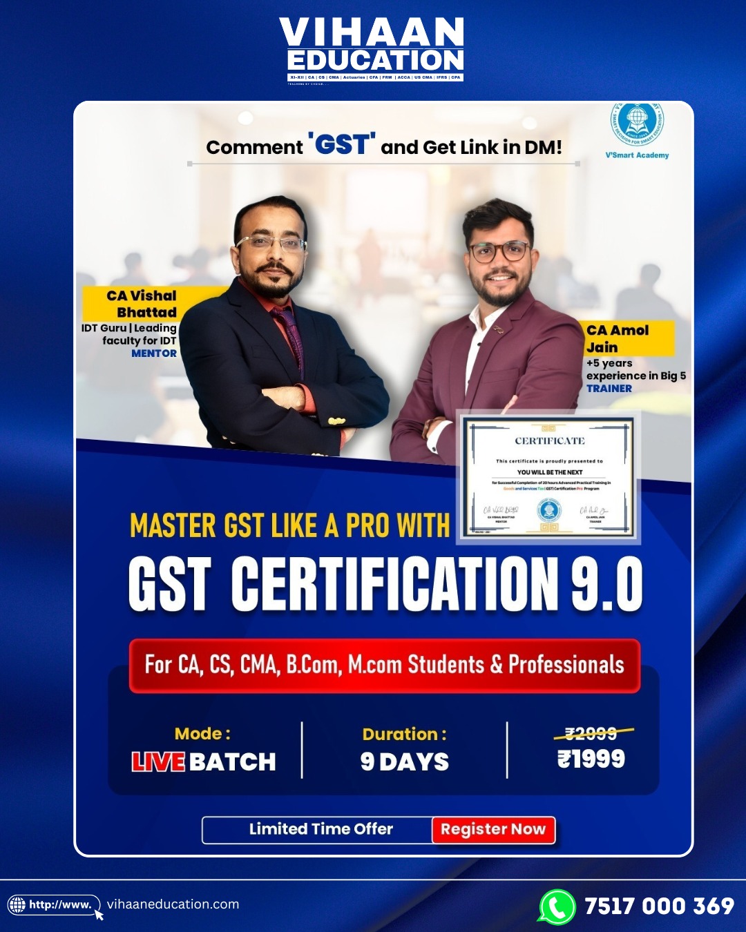 Categories: Brands, CA Amol Jain, CA Vishal Bhattad, Faculty, SKILL - OTHER COURESES, V-Smart Academy Tags: CA Amol Jain, CA Vishal Bhattad, Learn GST Certification 9.0 Course, Vsmart Academy