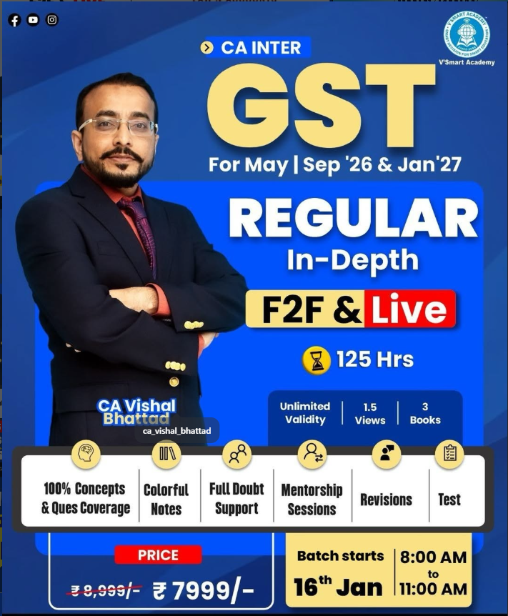 CA/CMA Final Indirect Tax (Regular Batch) Applicable For May 26, Sep 26 & Jan 27 Exams By CA Rajkumar