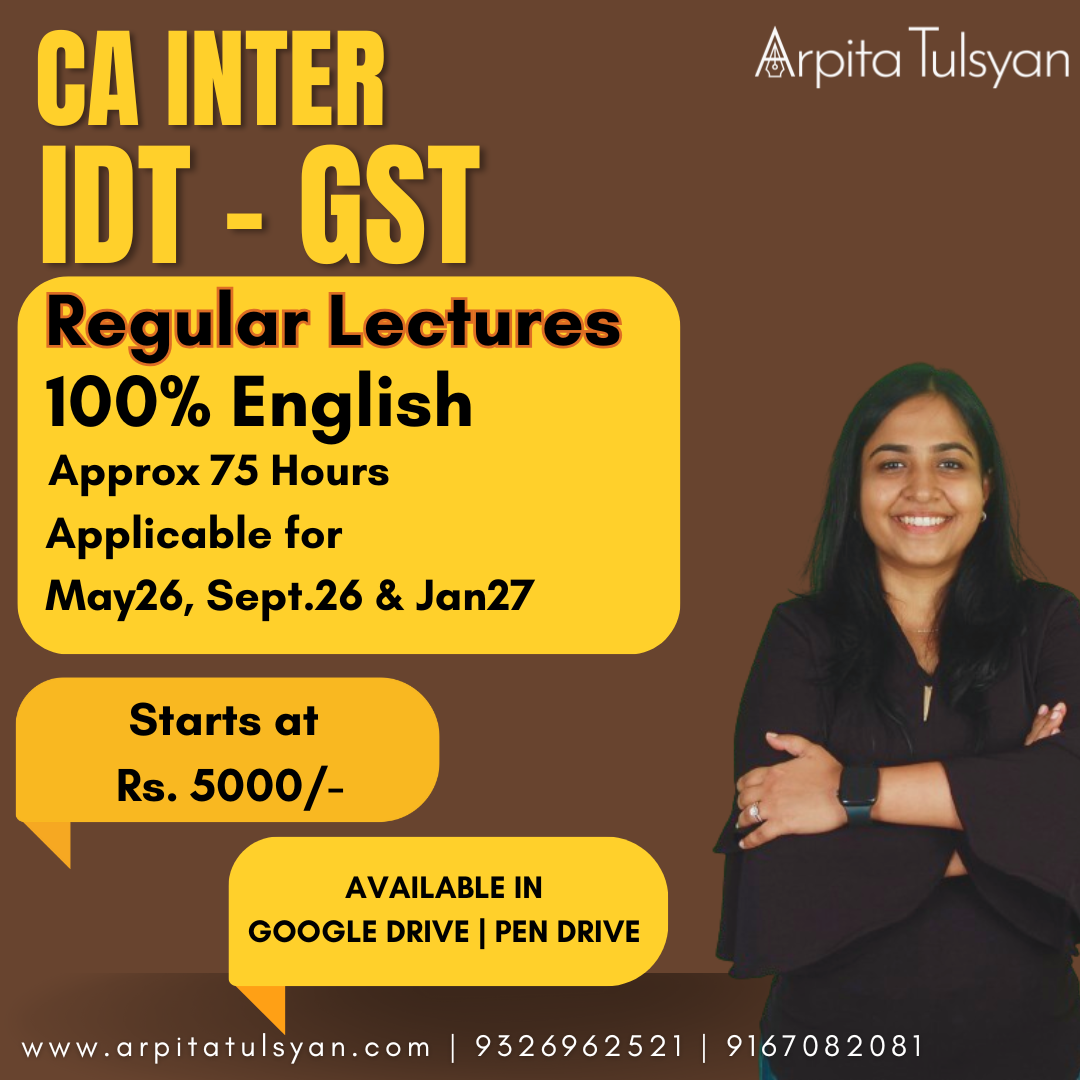 HomeBrandsArpita Tulsyan PRE-ORDER: CA Inter IDT(GST) Full Course Lectures – May 2026, September 2026 & Jan 2027 Exams – English